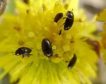 - Méligèthe du colza, coléoptère qui mange les fleurs.