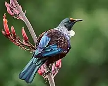 — (Découvrez Stewart Island, voyagenouvellezelande.eu)Le Méliphage tui est un oiseau forestier bien connu pour ses chants émis avant l’aube. Cette espèce est endémique de Nouvelle Zélande. Il se nourrit de nectar, ce qui fait de lui un pollinisateur important.
