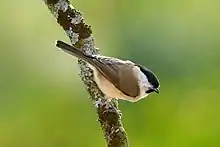 - (Ornithologie) Espèce de petit oiseau passereau d’Eurasie, mésange au corps gris-brun avec une calotte noire jusqu’à la nuque, une petite tache noire sous le bec (bavette) et des joues blanchâtres.