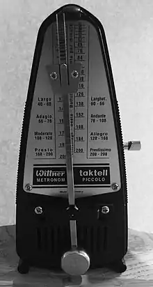 - (Horlogerie, Musique) Instrument d’horlogerie qui sert à battre la mesure.