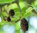 - Fruit composé comestible des mûriers (Morus) de couleur d’abord blanchâtre, puis rouge et enfin noire à maturité. Il est composé de petites baies globuleuses formées par le périanthe devenu charnu et portant un petit akène qui est le vrai fruit, et accolées les unes aux autres en épi.