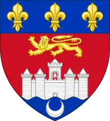 - Bordeaux (V.) — de gueules, au château d’argent, ouvert du champ, maçonné et ajouré de sable, à cinq tours couvertes en clocher et girouettées d’or, accompagné en chef d’un lion léopardé du quatrième émail et en pointe d’un croissant du second au chef semé de France. — (Pierre Charles Armand Loizeau de Grandmaison, Encyclopédie théologique, tome treizième : Dictionnaire héraldique, J.-P. Migne, Éditeur, Paris, 1852)