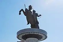 La statue d'Alexandre le Grand, qui était macédonien, à Skopje, capitale macédonienne.