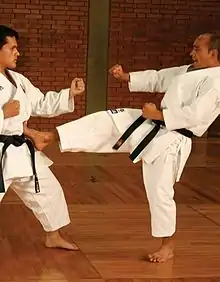 Le cogneur gagna un mae-geri école shotokan accompagné d’un cri qui tue dans le bas-ventre. L’opération le mit à genoux.