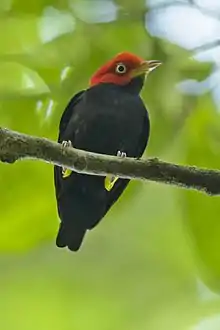 - Anglais : red-capped manakin (en)