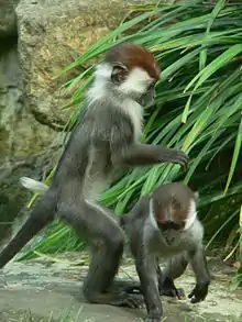 - mangabey à joues blanches, mangabey à joues grises (Lophocebus albigena)