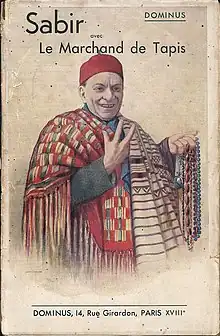 Dessin caricatural d'un marchand de tapis.