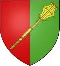 - Parti de gueules et de sinople, à la masse d’armes d’or posée en barre sur le tout, qui est de la commune de Colmar → voir « armoiries avec une masse d’armes »