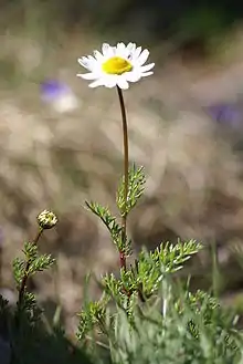 - (Botanique) Genre de plantes de la famille des Astéracées ou une plante voisine de ce genre, plante annuelle à tige dressée, aux feuilles alternes, sessiles, épaisses, charnues, très divisées, en lanières aux fleurs, jaunes au centre, blanches à la circonférence, très odorantes, groupées en capitules solitaires au sommet des rameaux.