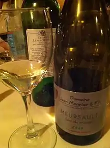 Bouteille et verre de meursault.