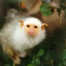 - Petit singe du Brésil, ouistiti argenté, quadrumane.