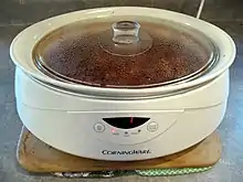 - (Cuisine) Appareil électroménager fonctionnant comme une casserole chauffée à feu doux, permettant la cuisson durant des heures quasiment sans risque de bruler la nourriture.