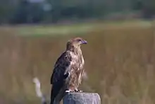 - (Ornithologie) Espèce d'oiseau rapace diurne (falconiforme) de la famille des accipitridés, un milan d'Australie, Nouvelle-Calédonie et Nouvelle-Guinée au plumage chamois pâle, avec les ailes brunes et les rémiges noires, et qui siffle, souvent en vol.