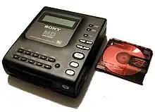 - (Désuet) Support magnéto-optique d’enregistrement et de reproduction numérique qui a été lancé par Sony en 1992.