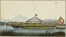 Un bateau utilisant les chevaux d’un manège comme moteur animé (Genève, 1825).