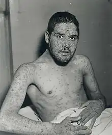 - (Argot)(Désuet) Personne dont la figure est grêlée de marques de la variole.