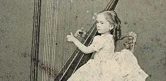 Photographie ancienne d'une petite fille jouant de la musique. (2)