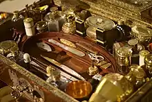 — (Louison Dutoit, Le Courage de la terre : 1950-2000, une paysanne raconte, Éditions d’en bas, 2004)Le général […] leur fit voir ce que contenait sa cassette et son nécessaire de voyage. […]. Le nécessaire était en vermeil et contenait tout ce qui pouvait être utile pour la toilette et les repas.