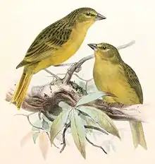 - (Ornithologie) Genre de petits passereaux au plumage jaune et vert jaunâtre et au bec conique de dimension très variable comprenant trois espèces de la famille des thraupidés (e.g. tangaras, callistes, etc.) toutes endémiques à certaines îles de l'archipel Tristan da Cunha et vulnérables aux menaces environnementales (genre Nesospiza).