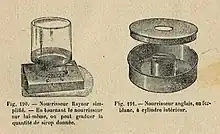 Vue schématique de deux nourrisseurs en usage à la fin du XIXe siècle.