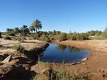 - (Date à préciser) Du grec ancien ὄασις, óasis, ce mot est d’origine égyptienne.