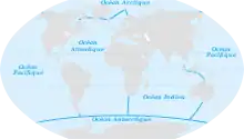 - Chacune des quatre ou cinq divisions majeures de l’océan :