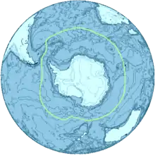 Limite de l’océan Austral selon les propositions de 2002 de l’Organisation hydrographique internationale.