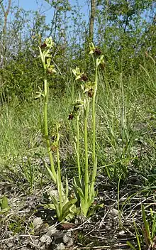 - (Botanique) Une orchidée terrestre européenne au labelle floral en forme d’abdomen d’insecte, brun avec une tache claire souvent en H, trois sépales et trois pétales verts.