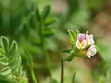 - (Siècle à préciser) Du néo-latin Ornithopus (« pied-d’oiseau ») composé de ornitho- (« d’oiseau ») et -pe, -pode (« pied »).