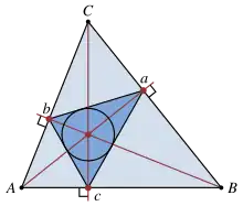 - (Géométrie) Désigne un triangle dont les sommets sont les points de rencontre des hauteurs d'un autre triangle.