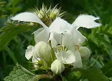 - (Botanique) Un des noms vernaculaires du Lamium album[1][2], le lamier blanc.