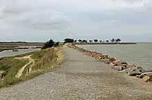 Digue sur l’île de Noirmoutier, ouvrage hydraulique protégeant un polder.