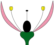 Les étamines les plus voisines du périanthe sont formées de lames jaunes et larges, ne différant de celles du périanthe que par un peu moins de largeur et par la présence, vers le sommet, d’une petite anthère rudimentaire.