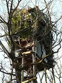 - (Gascogne) Mirador construit dans une forêt permettant de voir arriver au-dessus des arbres les oiseaux migrateurs pour les abattre à coups de fusil.