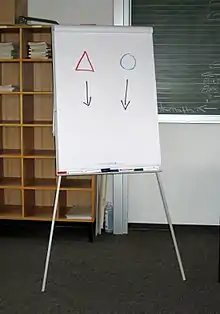 - (Faux anglicisme) Tableau souvent sur trépied constitué de grandes pages de papier rabattables ou pouvant être retirées.