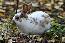 - Race de lapins, originaires de l’Angleterre, de petite taille, à robe tachetée.