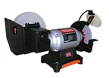 Devant la meule de droite, un pare-étincelles circulaire. (sens 2)
