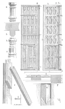 Vantail de la cathédrale de Poitiers composé d’un bâti contre lequel était appliqué un parquet de planches de chêne. (2)
