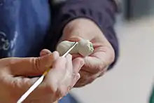 - (Céramique) (Indénombrable) Modelage de ces ornements (fleurs, etc.) en céramique.