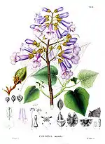 - (Botanique) Arbre originaire du Japon, remarquable par ses larges feuilles et ses fleurs d’un beau bleu.