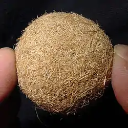 - Boule de couleur brune et de texture fibreuse formée des restes de posidonies qui s’accumulent sur les plages.