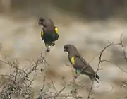 - (Ornithologie) Perroquet de petite taille, à tête, ailes et dos noir, que l'on trouve de l'Afrique du Sud au Tchad et à l’Éthiopie.