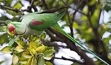 - Très grande perruche du sous-continent indien, du genre Psittacula, élevée en captivité, et devenue férale en Europe comme la perruche à collier dont elle est proche.