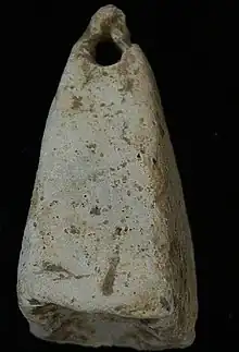 - Masse de plomb fixée à l’extrémité du fil de pêche ou du fuseau à filer.