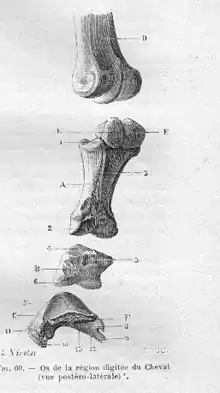 Les os de la région du doigt du cheval (Equus caballus) : phalanges (vue postéro-latérale).