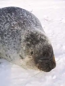 - Cette page comporte des éléments adaptés ou copiés de l’article de Wikipédia en français : phoque annelé, sous licence CC-BY-SA 3.0. (liste des auteurs et autrices)