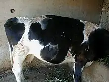 Lésions des parties blanches de la peau d'une vache pie-noire par photosensibilisation.