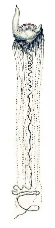 - (Malacologie) Animal marin pélagique siphonophore urticant.