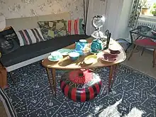 Table basse avec pieds en épingle.