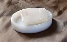 - (Cosmétologie) Morceau d'alun c'est à dire de sulfate double d’aluminium et de potassium ou d'ammonium (généralement fondu et moulé pour avoir une forme pratique) servant de déodorant ou pour divers usages dermatologiques.